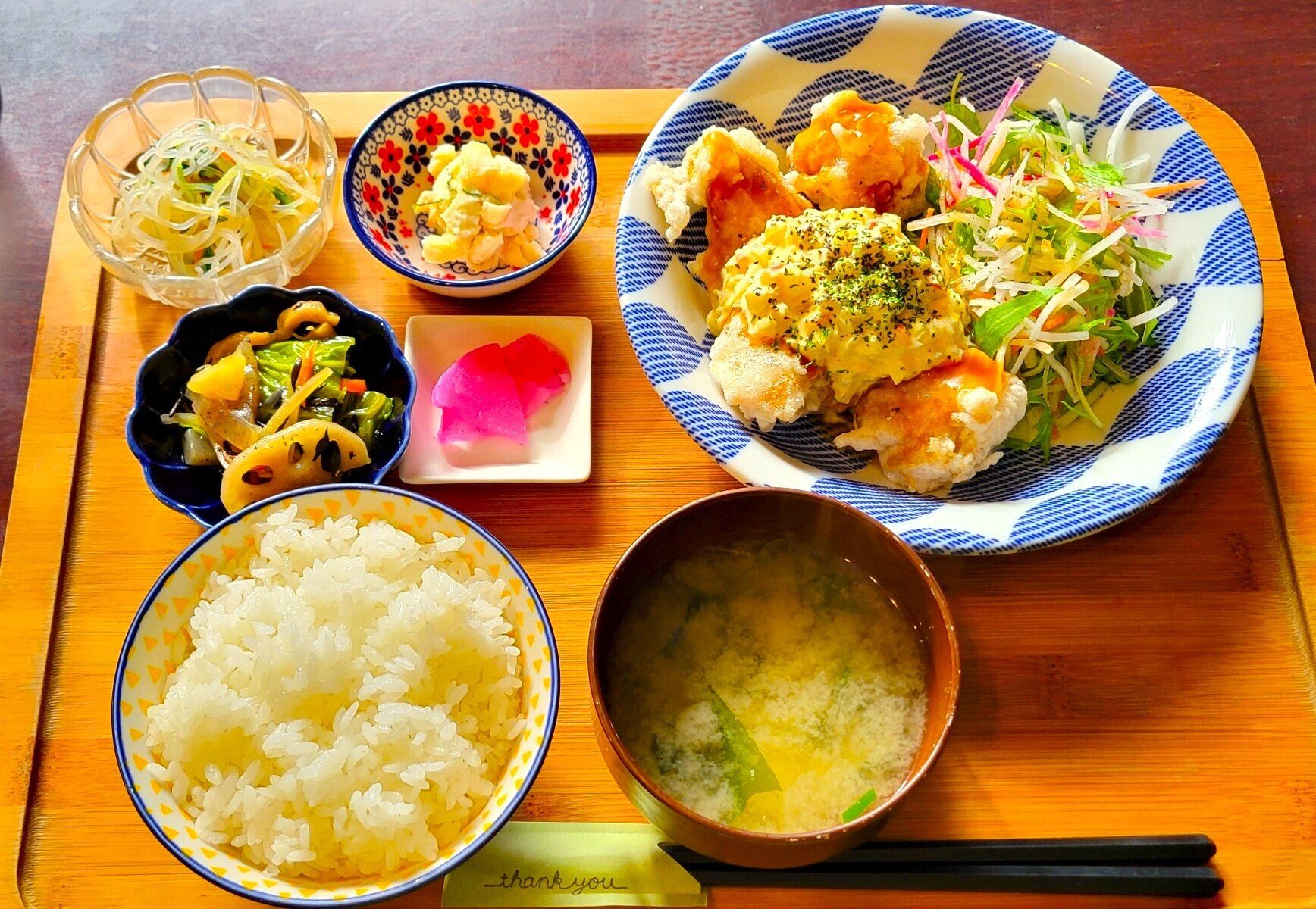 メインの「チキン南蛮」はチキンの外側はカリカリ!中はジューシー♡
